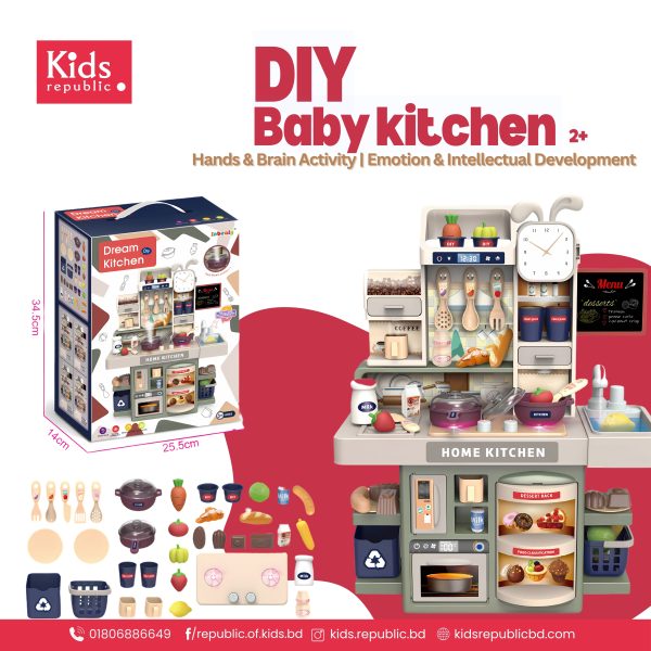 Bring your child’s imagination to life with this realistic kitchen set for kids — featuring mist fog light and water spray function for a fun, lifelike cooking experience! 🍳✨