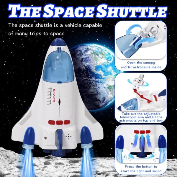 YULEYU Spaceship Toy Set with Lights & Sound for Boys Girls + Free Steel Harmonica Gift