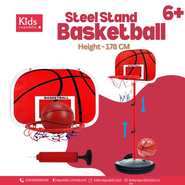 Steel Stand Basketball Set for Kids (3+) – Durable Frame with Ball, Net & Pump | Kids Republic BD